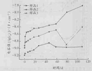 圖 3 不同含量的防銹顏料涂層電容值隨浸泡時間的變化曲線