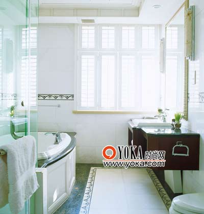 1.狹長而不規(guī)則的浴室重要的是如何進(jìn)行布局的規(guī)劃和物品的擺放。斜放的浴缸就可以把較小的空間拉長,高的浴房放在光線差的角落里,矮的物品放在光線充足的地方,使得空間給人以寬闊的錯(cuò)覺。