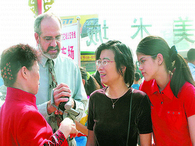 外國客商在博覽會現(xiàn)場。(李升華 攝)