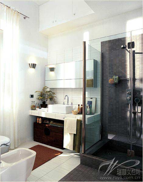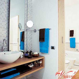 面盆下面的空間完全可以放得下一個(gè)較大的儲(chǔ)物箱,在安排這樣的的儲(chǔ)物方式時(shí),要注意儲(chǔ)物箱的密封效果,并且需要衛(wèi)浴間有較好的干濕分區(qū)。