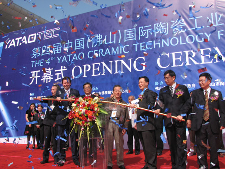 11月7日上午,第四屆中國(guó)佛山(國(guó)際)陶瓷工業(yè)展在佛山市國(guó)際會(huì)議展覽中心開(kāi)幕。佛山市主要領(lǐng)導(dǎo)和亞陶總裁托馬斯出席開(kāi)幕儀式并致辭。