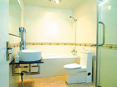 比如這套小復(fù)式中上下兩層都有洗手間,設(shè)計師便提出了“一主一輔”的方案,一樓的衛(wèi)浴間供客人使用,于是只裝了一個座便器、一個臺盆和一個花灑,并簡單地用浴簾將衛(wèi)浴間間隔開來。而二樓的衛(wèi)浴間則講究許多,由于主人非常強(qiáng)調(diào)衛(wèi)浴間的裝修,因此設(shè)計師在二樓衛(wèi)浴間里既安裝了浴缸,又設(shè)置了一個小型淋浴房,讓主人泡澡洗浴兩相宜。最讓主人感到滿意的是,二樓的衛(wèi)浴三件套僅花了982元,因為恰好遇上建材超市進(jìn)行衛(wèi)浴三件套的促銷。