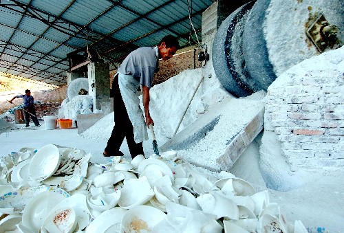 德化縣一陶瓷企業(yè)工人在對廢瓷品進(jìn)行碾磨回收再利用(11月15日攝)。 素有“瓷都”之稱的福建省德化縣現(xiàn)有各類陶瓷企業(yè)1000多家,陶瓷生產(chǎn)成了這個縣的支柱產(chǎn)業(yè),而由此帶來的環(huán)境污染和資源緊張等問題也成了制約當(dāng)?shù)亟?jīng)濟(jì)發(fā)展的絆腳石。近年來,當(dāng)?shù)卣μ剿?ldquo;節(jié)能減排,資源再生,發(fā)展循環(huán)經(jīng)濟(jì)”的新路子,采取回收利用廢瓷品、廢泥料、廢水、窯爐余熱等措施,進(jìn)行資源的再生循環(huán)使用,有效地保護(hù)了資源和環(huán)境。新華社記者 張國俊 攝