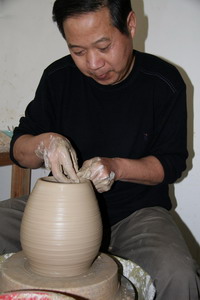 在龍泉的十三個青瓷大師中,張紹斌是唯一一個沒有生產(chǎn)日用瓷而只做藝術(shù)瓷的大師。曾經(jīng)也有人勸過張紹斌,在做青瓷的同時做點日用瓷,解決一下經(jīng)濟狀況?蓮埥B斌說,我一心一力做不出幾件好的作品,如果再分散精力來搞日用瓷,可能兩樣都做不好。再說現(xiàn)在的日子已經(jīng)過得去了,沒必要為了錢損失了創(chuàng)作的時間。