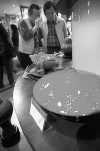 11月17日,市民們正在觀賞德化名瓷“富貴紅”瓷器。當(dāng)天,富貴紅高溫紅釉藝術(shù)瓷在剛剛?cè)〉檬谂频膹B門市富貴紅營銷中心展出。