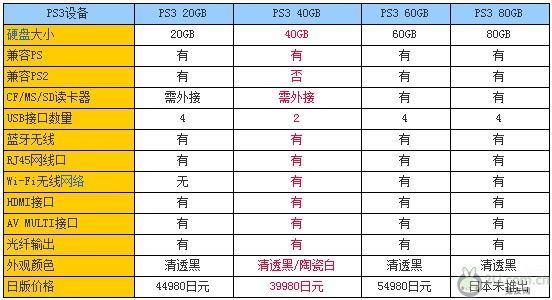 PS3 40G版的確有些與眾不同,僅管這款主機外型未有大的變化,外表與60G/80G主機基本相同。但當其規(guī)格表公布之后,我們才發(fā)現(xiàn)這款主機是如此的縮水:通過去掉EE和GS芯片,40G PS3已經(jīng)無法從向下兼容PS2游戲,這等于無形之中扼殺了幾千款游戲。不過在wifi支持和主機后的各種接口,PS340G版依然對其完整加以保留。僅管內置的讀卡器還是沒有加入,但可以通過轉接器進行連接,也還是可以解決問題。同時,40G版的PS3由原來的5公斤縮變成了4.4公斤,顯然它在重量有所減輕,但對于體積龐大且重量“驚人”的PS3來說,其實也只能算“略為減肥”,好在PS3用戶在家中并不需要把它搬來搬去。