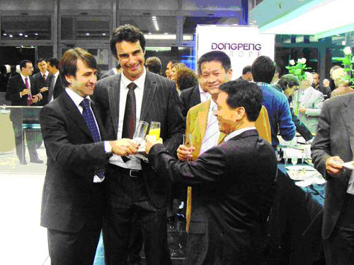 何新明 劉韌 與歐洲東鵬首席律師.股東Pole和東鵬國(guó)外產(chǎn)品設(shè)計(jì)師舉杯共賀