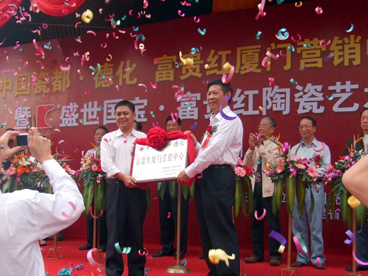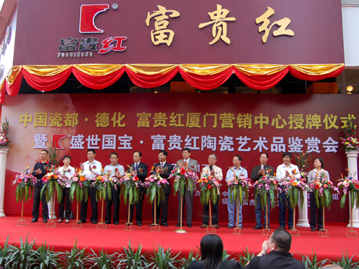 11月17日,“中國瓷都·德化”富貴紅廈門營銷中心在廈門文園路正式掛牌成立,這是其在全國的第九個營銷中心。據(jù)了解,從去年開始,德化縣在全國各地設(shè)立富貴紅營銷中心并統(tǒng)一規(guī)劃、統(tǒng)一宣傳、統(tǒng)一裝修、統(tǒng)一授牌,打造“中國瓷都·德化”品牌。