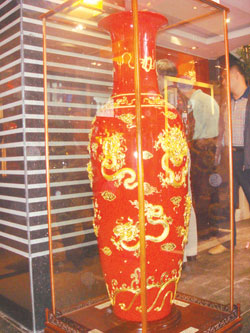 在富貴紅廈門營銷中心的展廳內(nèi),散發(fā)著紅色光彩的富貴紅瓷器迷倒了眾多慕名前來的鑒賞者。記者發(fā)現(xiàn),現(xiàn)場展出的“富貴紅”各類造型瓷器達300多種,小件造型玲瓏別致,大件造型富貴大氣,此次展出的陶瓷價格從幾千元到幾萬元不等,一件名叫“天圓地方”的紅釉大球瓶價格為8.8萬元,而另外一件“身高”超過1米的大紅瓷瓶的標(biāo)價為24萬元。