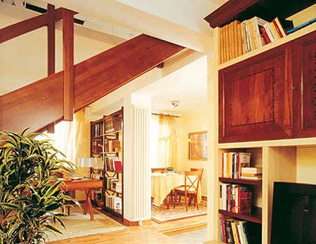 進書房、工作室最能調動激情,因為這里是一個人能力、理想、興趣、愛好的集中體現(xiàn),其效果就仿佛是孔雀大開屏。他(她)翻看你的書籍,無意間看到書柜里插著你學生時代的獲獎證書;他(她)在你的電腦前小坐,在你的文件夾里了解工作狀態(tài)的你……