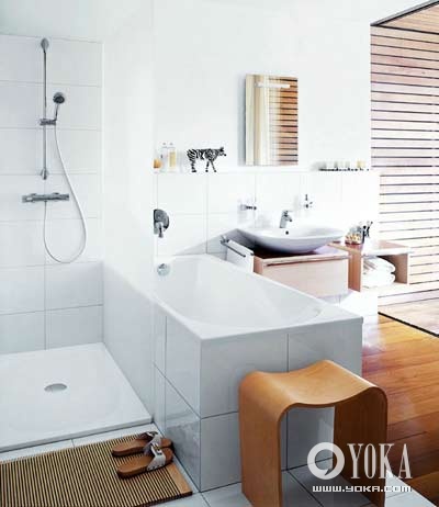 衛(wèi)浴間通常面積不大,空間尤為寶貴。角位浴缸的特殊設(shè)計(jì),將浴缸與淋浴設(shè)施巧妙結(jié)合在一起,有效地節(jié)約了空間。