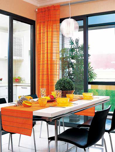 窗簾+桌祺+飾品=橙色三步驟