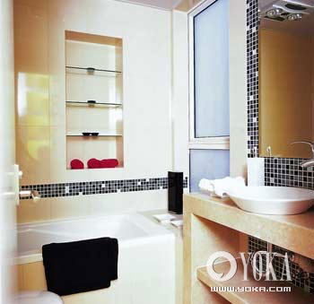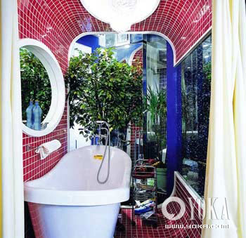 紅色是促使情緒起伏的顏色,如果置身其中,人難免激烈、亢奮而又容易疲憊。浴室的主人一定是富有激情的,他用大量紅色來點綴家居中最本色的部分;但即使在浴室,也沒有放棄理性,冷靜的灰白恰如其分地約束了紅色的煥發(fā)。這里并不拒絕靈魂的燃燒,無形的節(jié)制卻又無處不在。白色令人聯(lián)想到無暇和純潔,浴室的主人在潛意識中追求的絕不僅僅是身體的一塵不染,他還傾向精神層面的自我凈化。