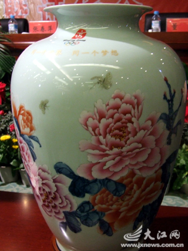 記者在現(xiàn)場看到,一組雕塑類瓷器把各個體育比賽項目中的運(yùn)動員所表現(xiàn)的力和美完美地進(jìn)行了表現(xiàn)。據(jù)生產(chǎn)方介紹,此次他們共用陶瓷打造了29款運(yùn)動造型雕塑,這是世界上首次如此全面的用陶瓷之美來展現(xiàn)運(yùn)動之美,這也是景德鎮(zhèn)人獻(xiàn)給奧林匹克運(yùn)動的一份獨特禮物。而一只由景德鎮(zhèn)陶瓷藝術(shù)家制作的名為《圓夢》的陶瓷花瓶,則采用寓意的手法,用10朵盛開的牡丹表達(dá)了中國人民決心要把第29屆奧運(yùn)會辦得十全十美、圓滿成功的美好愿望。其美麗的畫面、獨特的設(shè)計引得與會的奧組委官員與零售商紛紛搶著與其合影。