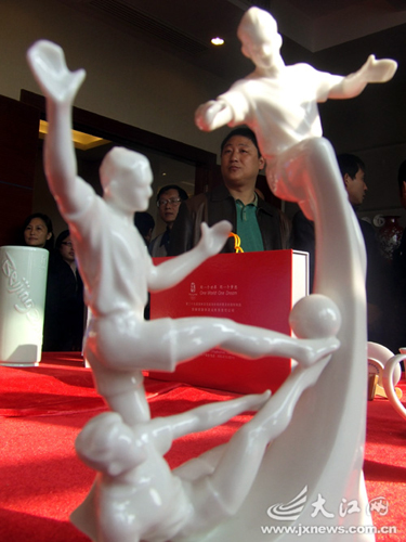 8日,“北京2008年奧運(yùn)會特許商品·景德鎮(zhèn)陶瓷新品發(fā)布會暨訂貨會”在景德鎮(zhèn)市舉行,73款由景德鎮(zhèn)市生產(chǎn)的陶瓷新品首次整體亮相。與會人士紛紛表示,景德鎮(zhèn)生產(chǎn)的陶瓷新品創(chuàng)意新穎、設(shè)計獨特,充分展現(xiàn)了中國獨特的奧運(yùn)文化。此間陶瓷業(yè)內(nèi)人士表示,搭上奧運(yùn)經(jīng)濟(jì)快車的景德鎮(zhèn)陶瓷,將獲得一次質(zhì)的飛躍。
