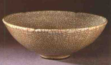 又稱哥瓷、哥窯瓷,南宋龍泉青瓷窯系中—些技術(shù)力量很強的作坊,受官窯工藝的影響,生產(chǎn)出的一種釉面滿布碎片紋的青瓷。瓷器釉層開裂片紋,是由于胎體原料受熱時膨漲系數(shù)大于釉層的膨漲系數(shù),在瓷器燒成后冷卻時,胎體將表面玻璃釉層拉碎,即為百圾碎。由于胎釉密合極佳,釉層不剝落,也不劃手,除了出現(xiàn)奇特自然的片紋,沒有任何有礙使用之感。宋代龍泉窯的工匠人為控制胎釉成分作出這種奇特片紋的瓷器,為宋代瓷器藝術(shù)的百花園增添了光彩。龍泉地區(qū)考古發(fā)掘、調(diào)查發(fā)現(xiàn)的哥窯瓷器,都是灰白胎,質(zhì)地比較粗,施淺灰色青釉,釉質(zhì)肥潤,片紋大小相錯,深淺有致,裝匣時墊坯工具為墊餅或墊圈、墊燒工具的質(zhì)地很細膩。傳世瓷器中被認為是哥窯作品的,還有鐵骨胎、深灰胎、土黃色胎的,釉色有炒米黃色、淺炒米黃色等。宋代沒有任何歷史文獻記載哥窯,或哥釉瓷,元孔齊《靜齋至正直記遺編》開始出現(xiàn)“哥哥洞窯”、“哥哥窯”,對哥窯特點的描寫不具體。到明洪武時曹昭在《格古要論》描寫哥窯器為“色青,濃淡不一,亦有鐵足紫口”,“元末新燒,土脈粗燥,色亦不好”。沒有說明哥窯和弟窯之間的關(guān)系。嘉靖四十年的《浙江通志》有更具體的描述。指出其產(chǎn)地在琉華山下的琉田鎮(zhèn),即龍泉的中心窯場大窯!墩憬ㄖ尽分械谝淮纬霈F(xiàn)了章生一、章生二兄弟主一窯場的事,哥窯生產(chǎn)開片瓷,弟窯生產(chǎn)不開片的龍泉青瓷。哥窯弟窯故事的完備,從《靜齋至正直記遺編》到《浙江通志》成書,經(jīng)歷一個世紀。這個故事是逐漸編出來的,與歷史事實不符。多少年來考古工作者對龍泉窯系進行大規(guī)模的拉網(wǎng)式調(diào)查,1979年浙江省考古研究所、中國社會科學(xué)院考古研究所、故宮博物院、上海博物館、中國歷史博物館、南京博物院等單位聯(lián)合進行了大規(guī)模發(fā)掘、沒有發(fā)現(xiàn)章氏兄弟的廟、碑、墓葬及任問歷史遺跡、也沒有發(fā)現(xiàn)單獨生產(chǎn)哥釉瓷的窯址。與龍泉地區(qū)青瓷生產(chǎn)情況完全符合的明人著作,只有陸容的《菽園雜記》,他在龍泉訪古、談龍泉青瓷很多,但只字未提哥窯。情況應(yīng)該是這樣,釉面滿開片的哥釉瓷是龍泉青瓷中部分窯場的一種產(chǎn)品,很有特色,生產(chǎn)作坊不是一個獨立的瓷窯體系,后人錯誤地把它們分為哥窯和弟窯兩個窯系。明清以后的哥瓷更加復(fù)雜化,因為景德鎮(zhèn)有專門仿哥釉瓷的哥窯戶,這些仿品應(yīng)該和宋元哥釉瓷區(qū)分開來。(見下圖)