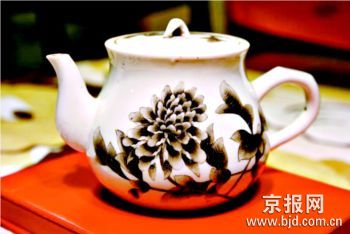 走馬觀花地看了一圈,沒有發(fā)現(xiàn)值得買的東西。正打算離開,玻璃櫥窗里的一把茶壺吸引了我,壺身瑩潤的白色釉面上,用濃淡不一的墨色畫了一枝折枝牡丹,牡丹顯得十分嬌艷,婀娜多姿;與之相呼應(yīng)著,壺蓋上也繪了一枝牡丹。我讓老板把茶壺拿出來,仔細(xì)觀看,這是一件清代光緒的茶壺,于是開始和老板講價(jià)。老板很會叫苦,說什么生意不好做,錢都到股市上去了。我一口咬定就一千元,一分不加,最后成交。