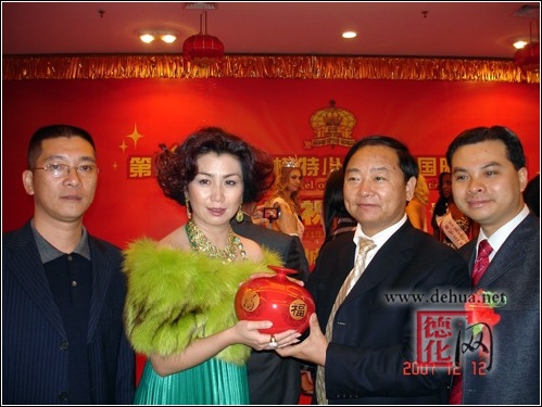 五洲模特盈,T臺(tái)冠冕晉;窯寶授佳麗,瓷都揚(yáng)名聲。第十七、十八屆世模小姐大賽指定獎(jiǎng)品,第九屆外交部對(duì)外友好和平聯(lián)誼會(huì)贈(zèng)送外國使節(jié)禮品,“9·8”中國國際投資貿(mào)易洽談會(huì)組委會(huì)指定貴賓禮品,福建省委贈(zèng)給菲律賓總統(tǒng)阿羅約的外事禮品——富貴紅高溫紅釉藝術(shù)瓷,被在山西運(yùn)城第19屆世界模特小姐大賽國際總決賽選定大賽唯一指定獎(jiǎng)杯和貴賓禮品,頒發(fā)給第十九屆世界模特大賽獲獎(jiǎng)佳麗,這是富貴紅“青春麗人”紅釉瓷瓶連續(xù)三屆成為國際頂級(jí)選美賽事指定獎(jiǎng)杯。