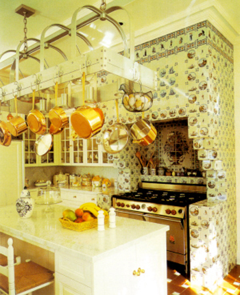 這座凹凸壁爐的表面從上至下鑲滿了陶制貼面磚,大體是參照十七世紀(jì)荷蘭家居的風(fēng)格排列的,各種各樣的圖案構(gòu)成了引人注目的組合,在金屬感覺(jué)盛行的廚房中顯得別具一格