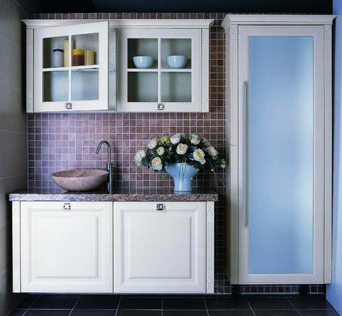 將往昔的魅力與現(xiàn)代生活結(jié)合在一起,永遠(yuǎn)是設(shè)計(jì)師創(chuàng)新的源泉。浴室家具門板上的刀切紋路,小巧古典的柜門把手,這些細(xì)節(jié)跟過去在舊電影中看到的一樣,呈現(xiàn)著一股凝固住時間的懷舊氣息。每日一小時的衛(wèi)浴時光成為鄉(xiāng)野中的小憩,帶著懶洋洋的悠閑氣質(zhì)!