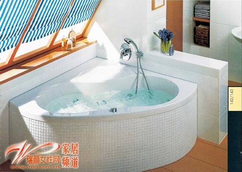 如果衛(wèi)浴間是全落地式斜屋頂或者是斜屋頂下方特別低,這時候可以選擇適合角度的三角形浴缸。這樣就避免了傾斜的角度,大大提高了其舒適性。