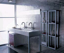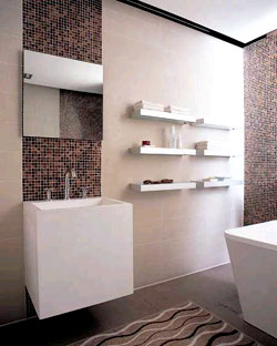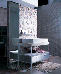 鮮亮的顏色永遠(yuǎn)不會被設(shè)計(jì)師遺忘,在經(jīng)過一個(gè)沉沉冬季后,博洛尼已迫不及待地推出這款火紅的衛(wèi)浴主題墻,夏日的熱力激情勢不可擋,尤其能凸現(xiàn)摩登女郎們的驚艷魅力。2006年的亮色主題較往年更大膽,通體的紅色烤漆浴室家具加上銀色不銹鋼入墻龍頭,以及如蕾絲般的ArtDeco風(fēng)格瓷磚裝飾,就這樣整體造型吧,即便是十分自我的衛(wèi)浴空間,也要Show出最響亮的時(shí)尚宣言。