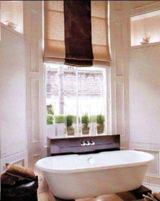 不少年輕白領(lǐng)喜歡把歐式帶立腳的浴缸擺在主人房――甚至客廳里,覺得很時尚。這種仿古浴缸有的為平口,有的是斜口。斜口的浴缸高口部分便于靠背,使沐浴的愜意感加深。但是,仿古浴缸并不是所有的衛(wèi)生間都可以安裝的,它需要有較大的空間,如果要追求更多的情調(diào),這類浴缸最好不要緊靠墻壁,至少留有20到30厘米的余地,可適當裝飾一點羅曼蒂克的東西,像燭臺什么的,就是窗簾的位置也需要考慮好,半遮半掩的誘惑性最強。