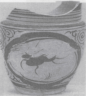 吉州窯彩繪瓷脫胎于磁州窯,磁州窯胎質偏黑灰,不得不在坯胎上先施一層淡色化妝土,然后再繪黑彩,以求色彩和諧。永和窯胎質白中泛黃,黑色釉與胎色反差過于強烈,顯得生硬,不受人們歡迎。而直接在坯胎上著褐彩釉,自然、和諧、古樸的特征顯而易見,且省工料,這就是吉州窯彩繪瓷絕大多數為褐彩的原因。