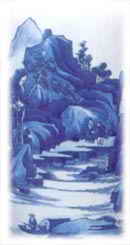 山水畫 在元青花、釉里紅中,山水畫開始顯露頭角。明代民窯青花,山水裝飾已矗立于陶瓷藝術(shù)之林。山川鄉(xiāng)氣、樓臺亭閣、田園風(fēng)光、庭園小景均饒有情趣,且筆勢灑脫,意境深遠(yuǎn)。清雍正、乾隆以來,多仿宋、元、明、清諸名家繪畫筆意。御窯制作大多工整精細(xì),而民窯產(chǎn)品則有明顯的裝飾性和質(zhì)樸的民間風(fēng)格。在畫風(fēng)上,康熙青花、五彩山水畫中的山石,山石呈劈開的片狀,系南宋畫院派的風(fēng)格,而雍正時期,則逐漸改用“披麻皴”,這是繪畫界追隨元代四王畫派對制瓷工藝的影響。乾隆時期山水畫的題材大量減少,而常以西湖十景及私人園缽之類,用寫實的手法畫在瓷器上。