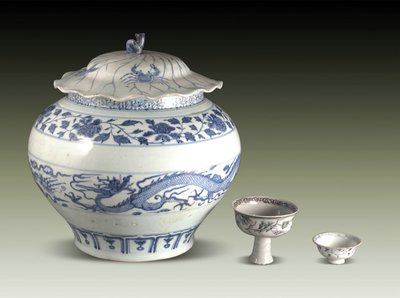 圖2 九江延六年墓出土的青花牡丹紋塔式蓋罐 館藏延型高足杯