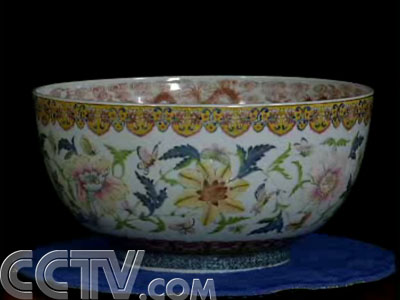 毛曉滬:這個(gè)吧,價(jià)格是比較難估的,為什么呢,就是這么大的東西,現(xiàn)在在市場(chǎng)上,沒(méi)有見(jiàn)拍賣過(guò),這是孤品,我曾經(jīng)問(wèn)過(guò)故宮的專家,我說(shuō)的,像這么大的碗,故宮有沒(méi)有,那么包括耿老,都說(shuō)過(guò),說(shuō)根本就沒(méi)有。也就是說(shuō)這只碗應(yīng)該是清朝末年從宮里流出去的,至于怎么留出去的,非常難說(shuō)。因?yàn)槟,?dāng)初,當(dāng)時(shí)呢,那個(gè)宣統(tǒng),也就是溥儀做皇帝的時(shí)候,大量宮里的東西都曾經(jīng)被太監(jiān)啊,或者被溥儀啊帶出宮里頭,那么估計(jì)這只碗,也是在清朝晚期動(dòng)蕩的時(shí)候,從故宮留出去的。