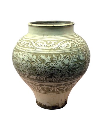 但此時(shí)大多數(shù)的北方窯場(chǎng)燒不出完美的青綠色瓷,北方的瓷土遠(yuǎn)不如南方細(xì)膩,以磁州窯為主的白地黑花產(chǎn)品與南方細(xì)膩、輕薄、幽靜的青瓷藝術(shù)在風(fēng)格上相去甚遠(yuǎn),然其靈動(dòng)鮮活的紋飾頗受人們的喜愛(ài)。同時(shí)期北方瓷器還流行著一種剔花裝飾。