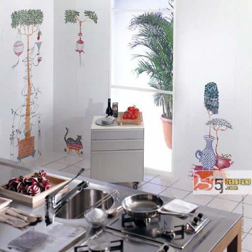 在這種色彩環(huán)境里,可以清爽為主導。鄉(xiāng)土氣息的顏色搭配讓人神清氣爽。相比于地面,墻面顯然有更大的發(fā)揮余地,因此是最好的表現(xiàn)場所。圖案是調制田園味道不可缺少的組成部分,精美圖案的組織安排,四方聯(lián)的整塊使用或二方聯(lián)的連續(xù)使用都會很容易被人接受。明亮的空間是讓空氣感到清新的重要因素,顏色含灰度不能高,要始終保持一定的亮度。而高明度的原木色或略含灰度的藍綠色在色彩感覺上比較對味,也更適合廚房。