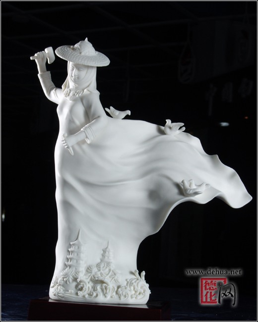 偌大的展廳里,你與中國白第一次親密接觸。目光所及處,皆是不同于俗世的尤物-溫潤如玉的膚色,平滑細(xì)膩的質(zhì)感,栩栩如生的人物,別具一格的造型,無不激蕩你已干涸許久的心湖,那激起的朵朵浪花里,都折射出愛的心語,讓你情不自禁地伸出手,觸摸它們,甚至擁入懷中占為己有,然而,褻瀆圣潔的行徑你是斷然不敢去嘗試的,不過,如癡如醉的目光可以從容不迫甚至肆無忌憚地追尋美的所在。