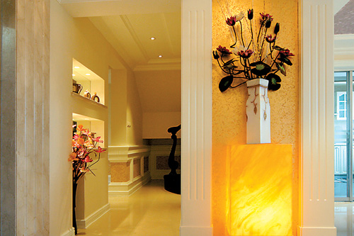 這是一套典型的現(xiàn)代歐式設(shè)計(jì),除保留一些經(jīng)典歐式元素外,大量運(yùn)用了現(xiàn)代設(shè)計(jì)手法及材料,整體感覺雍容華貴而不落俗套,在多材料的搭配中尋求和諧完美。整體設(shè)計(jì)以淺色調(diào)為主。