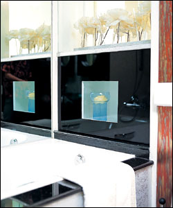值得借鑒的地方:浴缸的一面墻改為裝飾墻,里面安放了一些插花,使衛(wèi)生間里保持自然的氣息,可以從衛(wèi)生間外面隨時更換插花,很有創(chuàng)意也非常方便。
