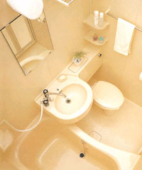 裝飾特點:在極為窄小的空間里,可以實現(xiàn)最多功能。如果衛(wèi)生間很小,一般擺放浴缸是不可能的,但整體預(yù)制型衛(wèi)浴利用鑄模的優(yōu)勢解決了這個問題,浴缸在長度的限制下盡量做寬,盥洗池和馬桶為一個整體,這樣,水箱的位置可以做一個放置物品的臺面。