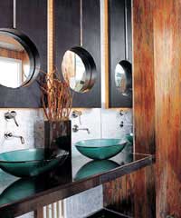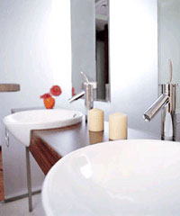 整體風(fēng)格:看似簡單的設(shè)計,其實包含了最不簡單的要求。獨立式浴缸,房間主人可以在洗浴的同時透過陽臺上的大玻璃欣賞外面的景色;雙人面盆,外表簡單,其實是世界頂級的衛(wèi)浴產(chǎn)品;墻面、地面的馬賽克,是現(xiàn)在最in的墻面材料。