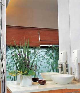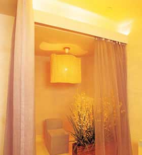 21世紀的SPA在空間設(shè)計上早已超脫過去沙龍式的封閉與傳統(tǒng),而是明亮中結(jié)合著音樂、芬芳、安寧與恬適,讓人一進門,就感覺到SPA的輕松自然。具有各國異地風(fēng)情的SPA,又能讓人跳脫現(xiàn)代都市水泥叢林的束縛,讓心靈、思緒遠離喧囂,讓疲累的身心重新獲得澄凈清明。借鑒這些專業(yè)SPA的設(shè)計精華,打造具有個性品位的HOME SPA,會使整個居室錦上添花。