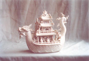 反瓷瓷雕龍舟:高21.6厘米,長27.2厘米