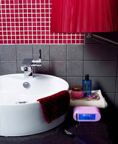 彩色地磚是突出的設(shè)計,粉色、紅色與咖啡色自然過渡,穿插裝飾,整個色彩環(huán)境讓人感受到一種溫暖和舒爽,并搭配同色系的浴室配件,呈現(xiàn)出獨(dú)具魅力的女性氣質(zhì)。