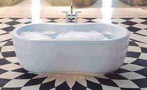 中央獨立式的浴缸具有設計感強的特點,從精美的裙邊到符合人體工學的缸體內部,或時尚、或豪華、或典雅的外形,在視覺上已經先聲奪人,為享受完美SPA過程打下感性基礎。