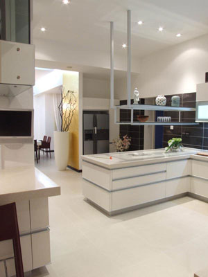 5.廚房也以白為主體色,以Art Deco拼花為點(diǎn)綴,原本冷感十足的氣氛透露出溫情細(xì)節(jié)。