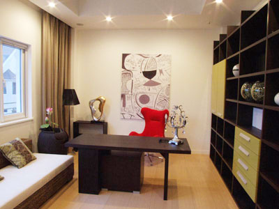 25塊黑橡木掛墻板,將客廳與餐廳巧妙分割,餐廳空間整齊而不失富麗,黑與白搭配出一派純粹的傲慢與高貴?蛷d低矮的沙發(fā)茶幾,憑借橫平豎直的幾何體傳遞頓錯(cuò)有力的節(jié)奏感,淺色的腳踏和艷麗的配飾,凸現(xiàn)空間剛?cè)岵?jì)的別樣風(fēng)情。
