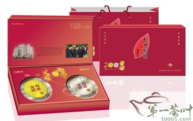 超大禮茶之企業(yè)紀(jì)念禮茶,精選武夷頂級巖茶,制成龍團(tuán)鳳餅金銀雙餅,以獨(dú)具特色的產(chǎn)品訴求“黃金的企業(yè)、白金的領(lǐng)袖”,為企業(yè)禮品、企業(yè)大事、新品上市紀(jì)念量身定做極具視覺沖擊力、震撼力的禮茶。包裝印有“2008”字樣(金、銀餅代表0,金幣正反面代表8),盒內(nèi)鑲嵌“茶為國禮”金幣(銅基貼純金),毛體大氣磅礴,金幣光彩奪目,更顯品味非凡。