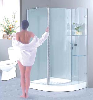 淋浴房的基本構(gòu)造是底盤加圍欄。底盤質(zhì)地有陶瓷、壓克力、玻璃鋼等,圍欄框架多為鋁合金質(zhì)地,外層噴塑。圍欄上安有塑料或鋼化玻璃門,可以方便進(jìn)出,玻璃上印有各色噴花或線條。淋浴房底盤的尺寸大致有80×80 厘米和90×90 厘米兩種,面積大小可以根據(jù)自己的需要確定。