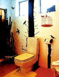 小衛(wèi)生間也是我們發(fā)揮創(chuàng)造力的空間,而且面積小,更容易產(chǎn)生立竿見影的效果。彩色瓷磚的拼貼、多彩涂料的墻繪,會使小小的衛(wèi)生間變得多姿多彩,充滿新奇的情調(diào),這些都是簡單易行的方法。如果你的衛(wèi)生間與浴室可以分隔開,那么大膽發(fā)揮的余地就更大了,平日深藏在盒子、柜子中的卡片和好玩的小東西完全可以掛在衛(wèi)生間里,多了被欣賞、把玩的機會。