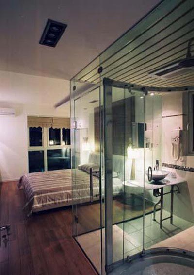 主臥的衛(wèi)生間沒有采光窗戶,或是主臥的空間看起來并不大,怎么辦?這幾年的裝修中,一些前衛(wèi)的人,贊同設計師的提議,將衛(wèi)生間的門墻打掉,裝上大面積的玻璃,營造出通體透明的衛(wèi)浴空間,并形成了大空間的效果。