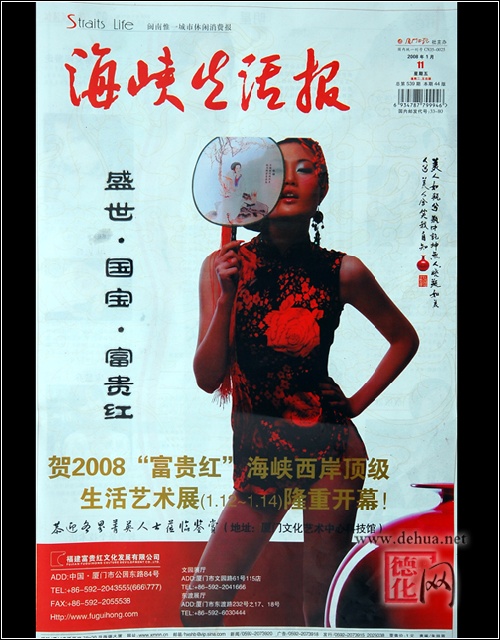 【德化網(wǎng) 訊】萬眾矚目的2008“富貴紅”海峽西岸國(guó)際頂級(jí)生活展將于2008年1月12日到14日在廈門文化藝術(shù)中心隆重舉辦。