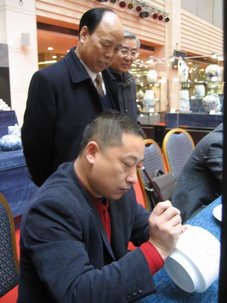 在上午的大廳現(xiàn)場(chǎng),記者還見(jiàn)到來(lái)自景德鎮(zhèn)的幾位陶瓷工藝大師在現(xiàn)場(chǎng)創(chuàng)作,他們的精湛畫(huà)藝贏得人們的陣陣驚嘆。(完)